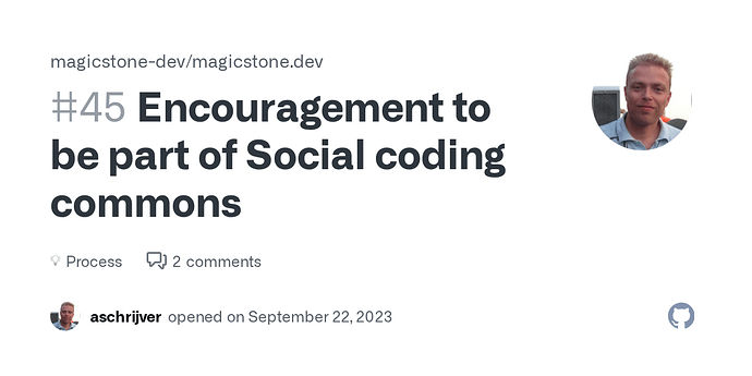 I made a proposal to the Magic Stone initiative, started by @weex, to consider themselves to be part of Social Coding movement. This means retaining full indepedence, but find collab and win-wins with other initiatives in our DoOcracy when focusing on the theme of healthy FOSS ecosystems and the FSDL.